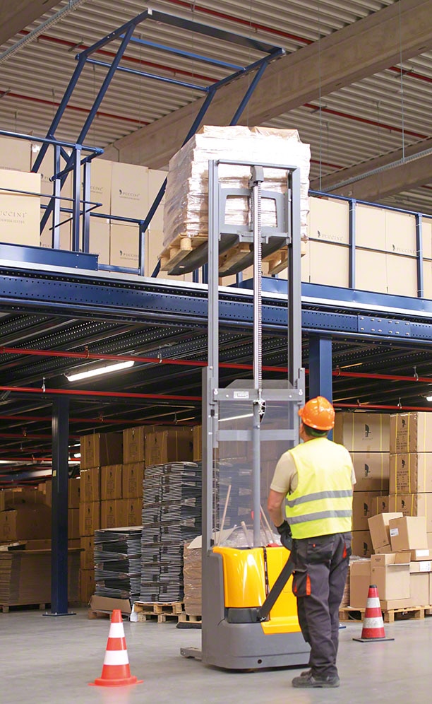 Cet entrepôt abrite la vaste gamme de produits de Puccini. Compte tenu de l'espace limité et du type de marchandises stockées, l’installation d’une mezzanine industrielle en vue de doubler la surface utile de stockage s’est révélée être la solution idéale. Pour la gestion des marchandises, elle a été équipée de rayonnages pour picking M7 pour charges lourdes.