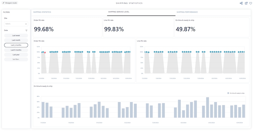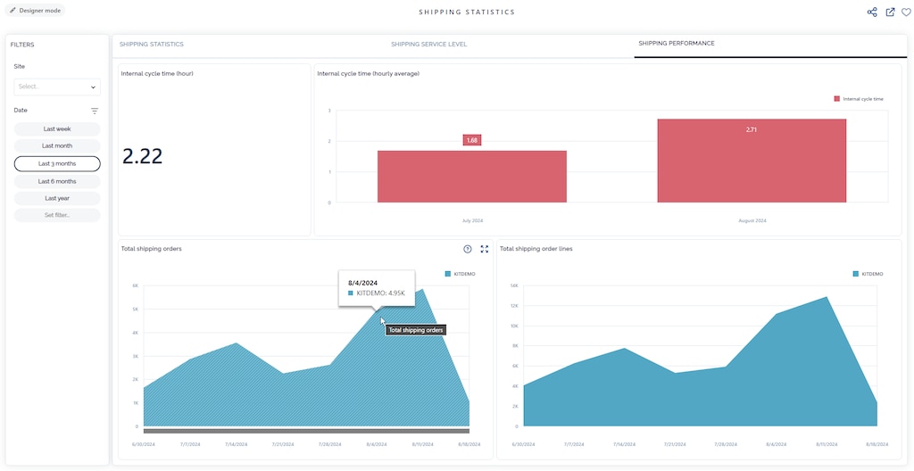 Jouissant d’une interface entièrement repensée qui simplifie, harmonise et enrichit la visualisation des données, la nouvelle version de Supply Chain Analytics présente des fonctionnalités de création de tableaux de bord 100 % personnalisés à partir d’un vaste catalogue de widgets couvrant les différents processus logistiques de l’entrepôt et regroupant une multitude d’indicateurs de performance.