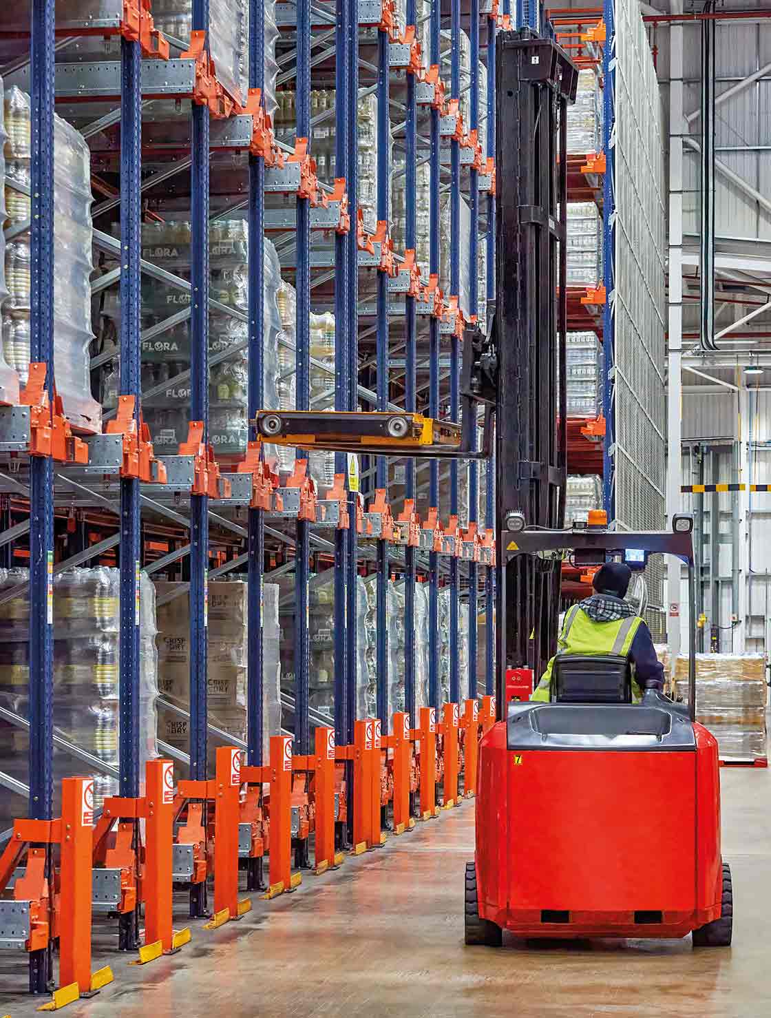 La zone exploitée à l’aide du système Pallet Shuttle est complétée avec des racks à palettes atteignant 10 mètres de hauteur et pouvant contenir 2 903 palettes supplémentaires. Ce système accélère l’accès direct aux marchandises, pour une préparation des commandes rapide et organisée. Selon le responsable logistique, la nouvelle zone de rayonnages permet de « maximiser la capacité et d’exploiter au mieux l’espace de l’entrepôt, tout en offrant un accès rapide à une grande diversité de produits ».