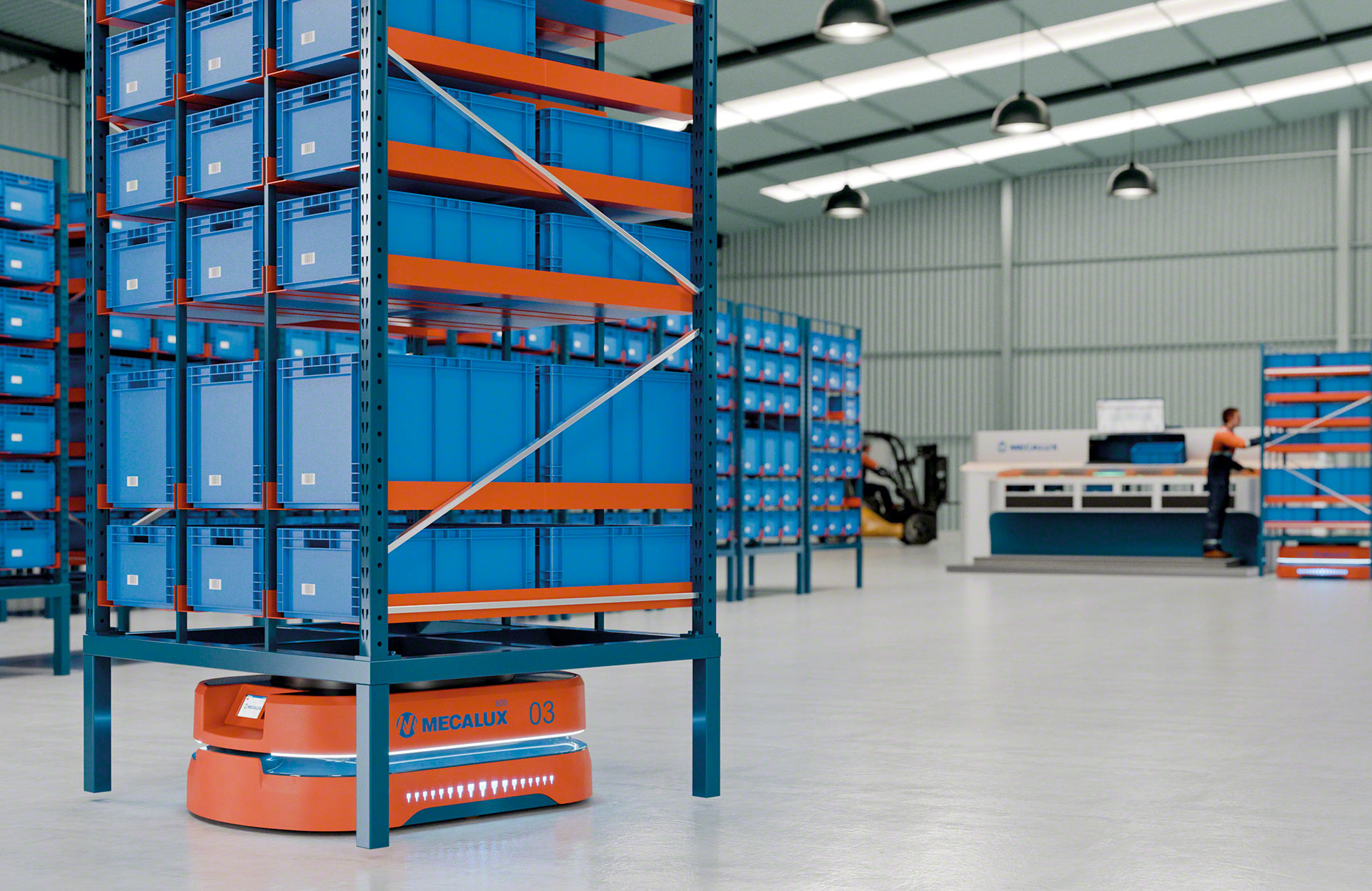 Les AMR de Mecalux sont des véhicules hautement polyvalents qui s’intègrent facilement dans tous les types d’entrepôts, car aucune modification de l’infrastructure existante n’est nécessaire. Les différents modèles de la gamme constituent un ensemble polyvalent couvrant la manutention de charges très diverses allant des bacs, plateaux et colis jusqu’aux étagères et palettes. Leur implantation dynamise et apporte flexibilité aux flux internes de marchandises dans de multiples opérations d’intralogistiques, ce qui stimule la productivité et l’efficacité de l’installation.