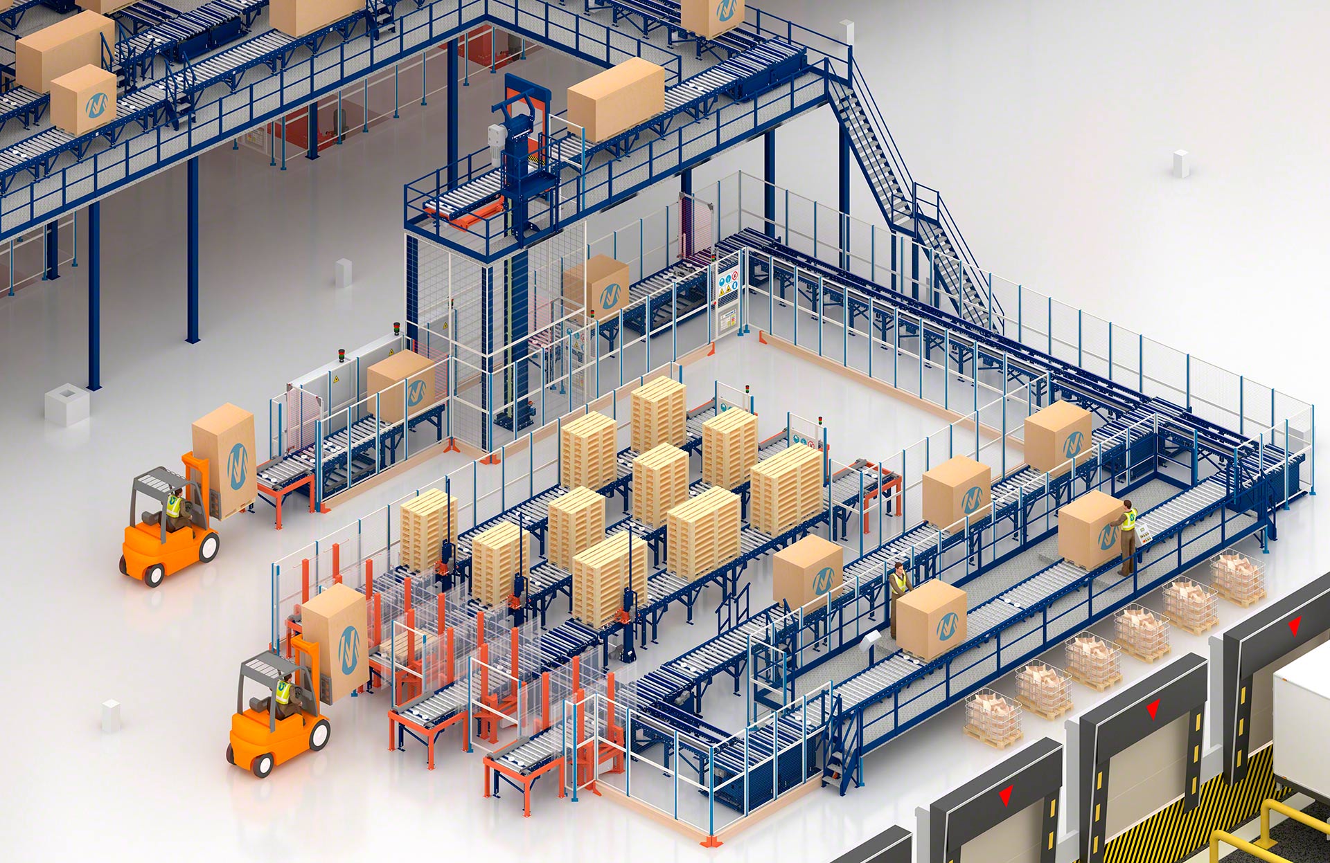Les élévateurs de Mecalux se distinguent par leur robustesse et leur adaptabilité, s’intégrant facilement dans les entrepôts automatisés comme conventionnels. Dotés d’un moteur électrique et d’un convoyeur dédié au transfert précis des charges, ces systèmes optimisent le flux interne de palettes et renforcent la productivité en réduisant considérablement les temps de transport.