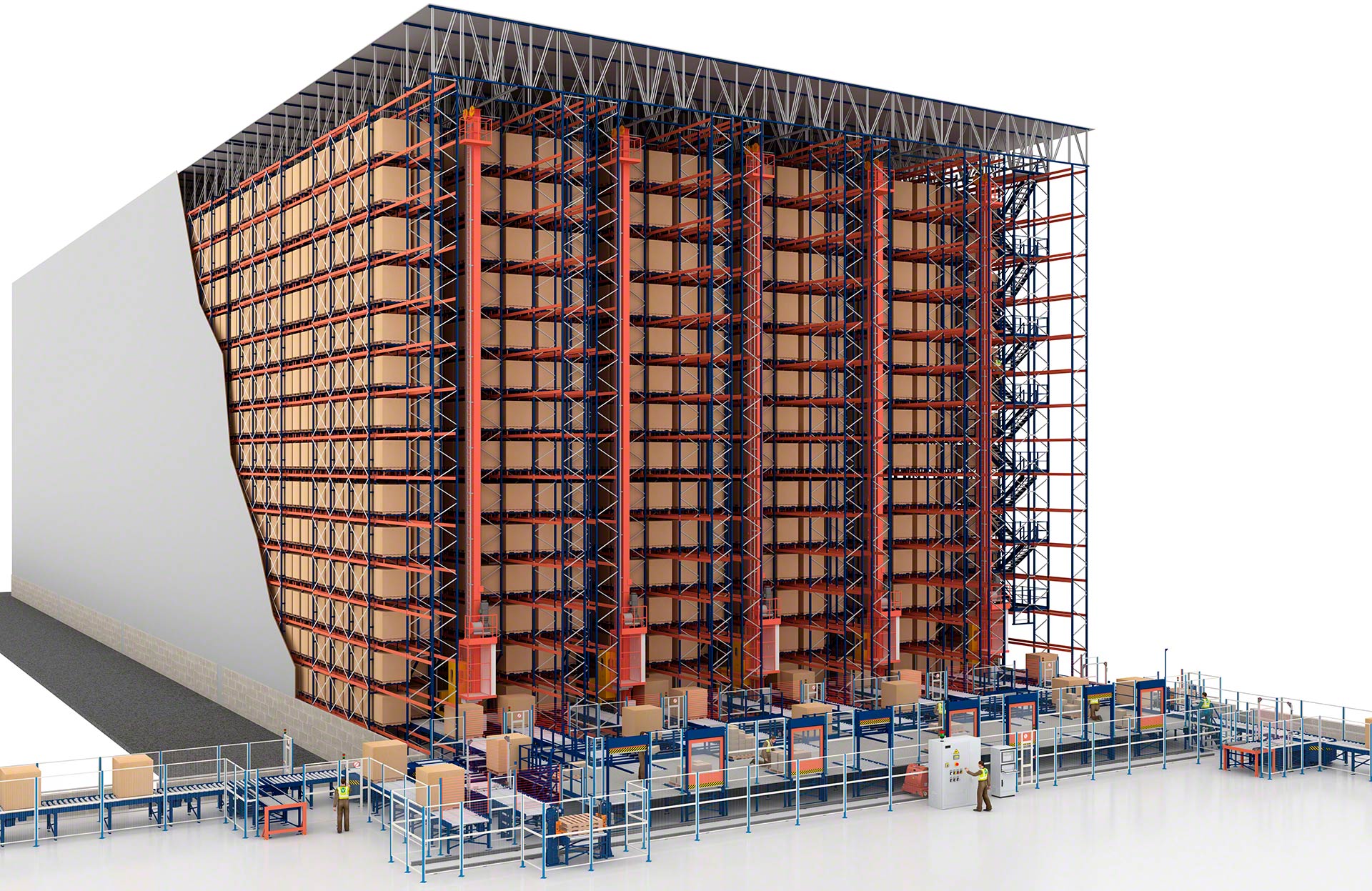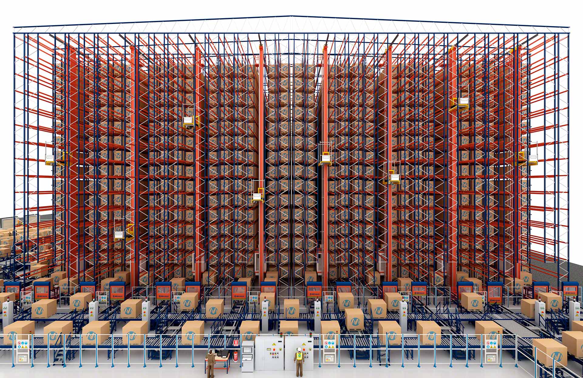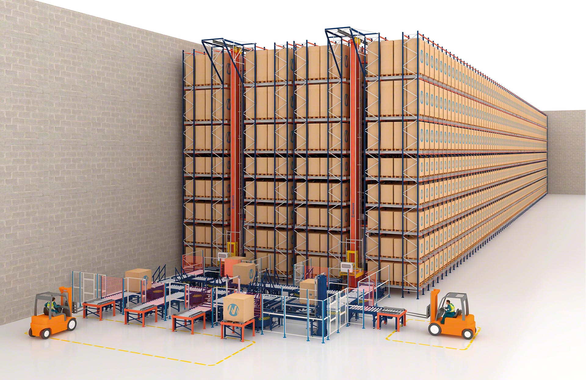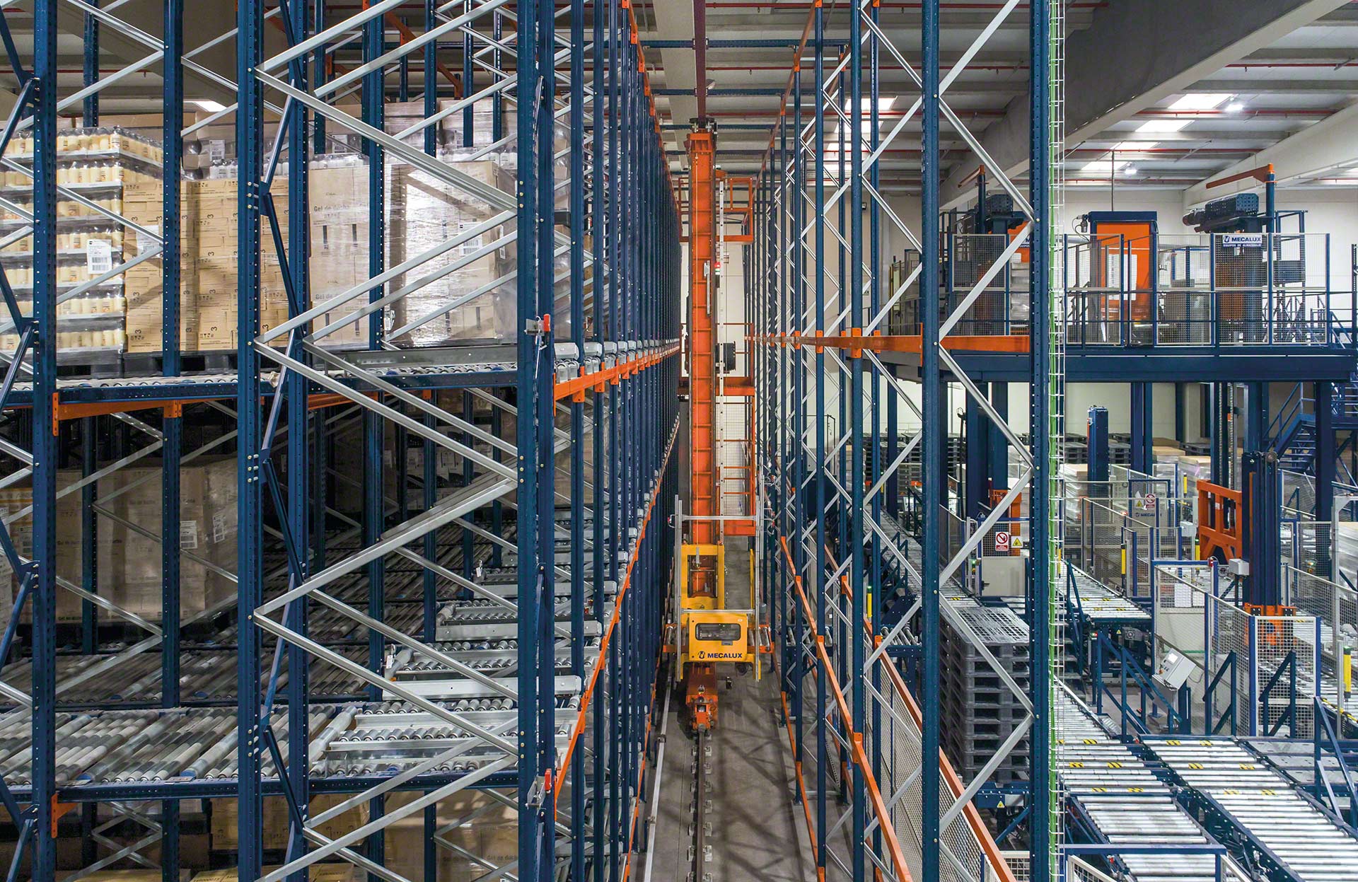 - Solution intégrale : Mecalux conçoit, fabrique, installe et met en service tous les composants de l’entrepôt automatisé, à savoir les rayonnages, les transtockeurs, les convoyeurs, le logiciel de contrôle et le logiciel de gestion.