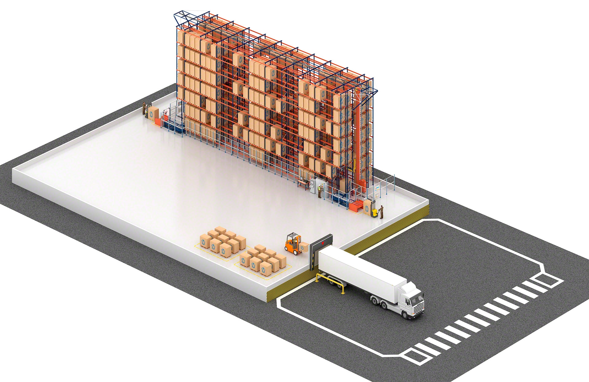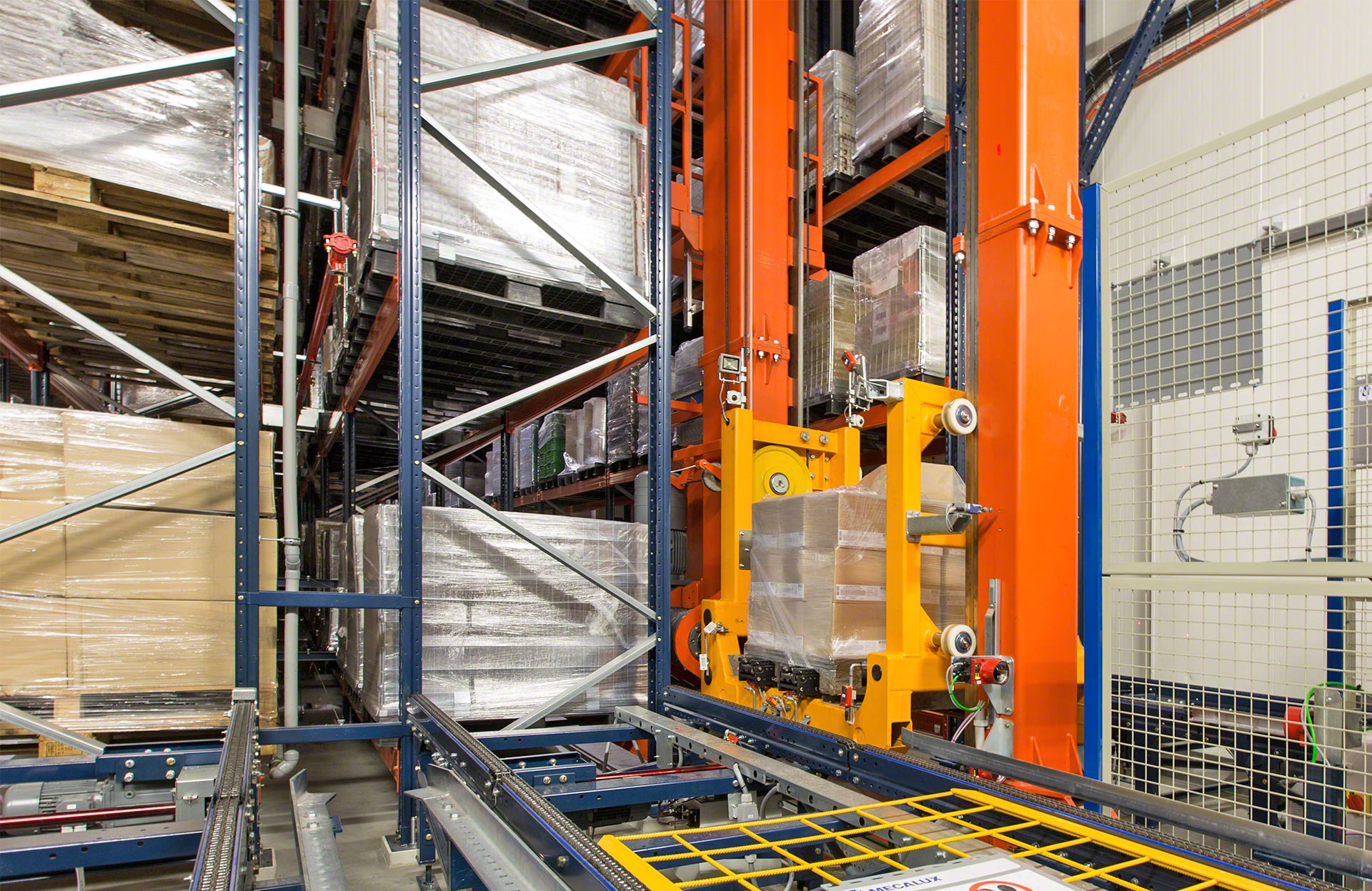 - Sécurité : les transtockeurs manipulent les palettes avec une extrême précision et le trafic de chariots de manutention est considérablement réduit, ce qui renforce la sécurité de l’installation.