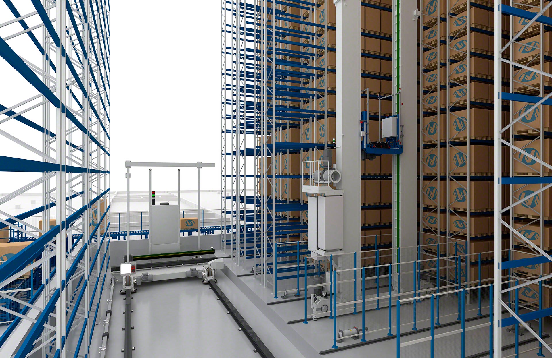 Le transstockeur automatise entièrement les opérations de stockage et de retrait des palettes