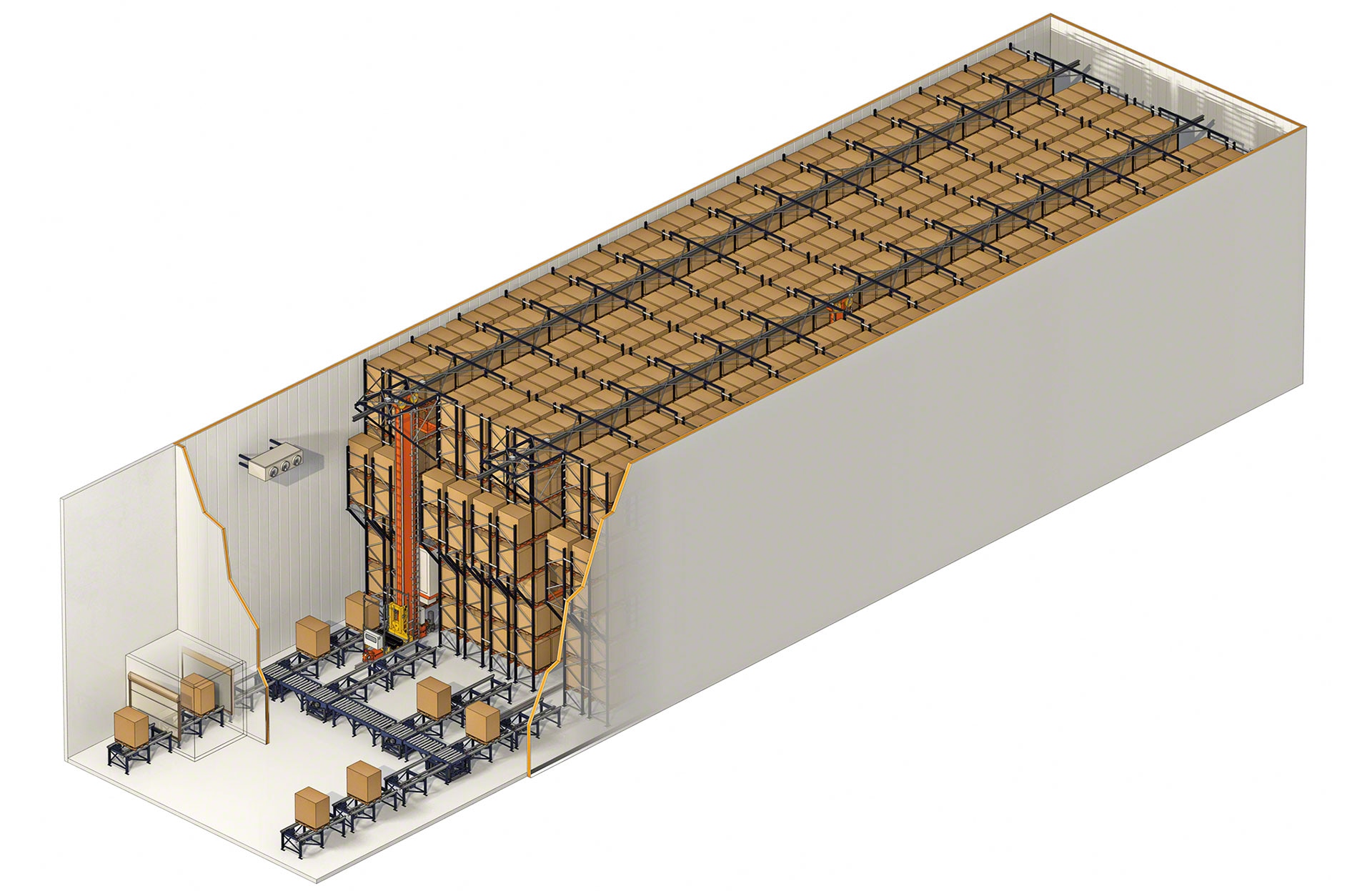 Les transstockeurs de Mecalux peuvent fonctionner dans une plage de température allant de -30 °C à +40 °C.