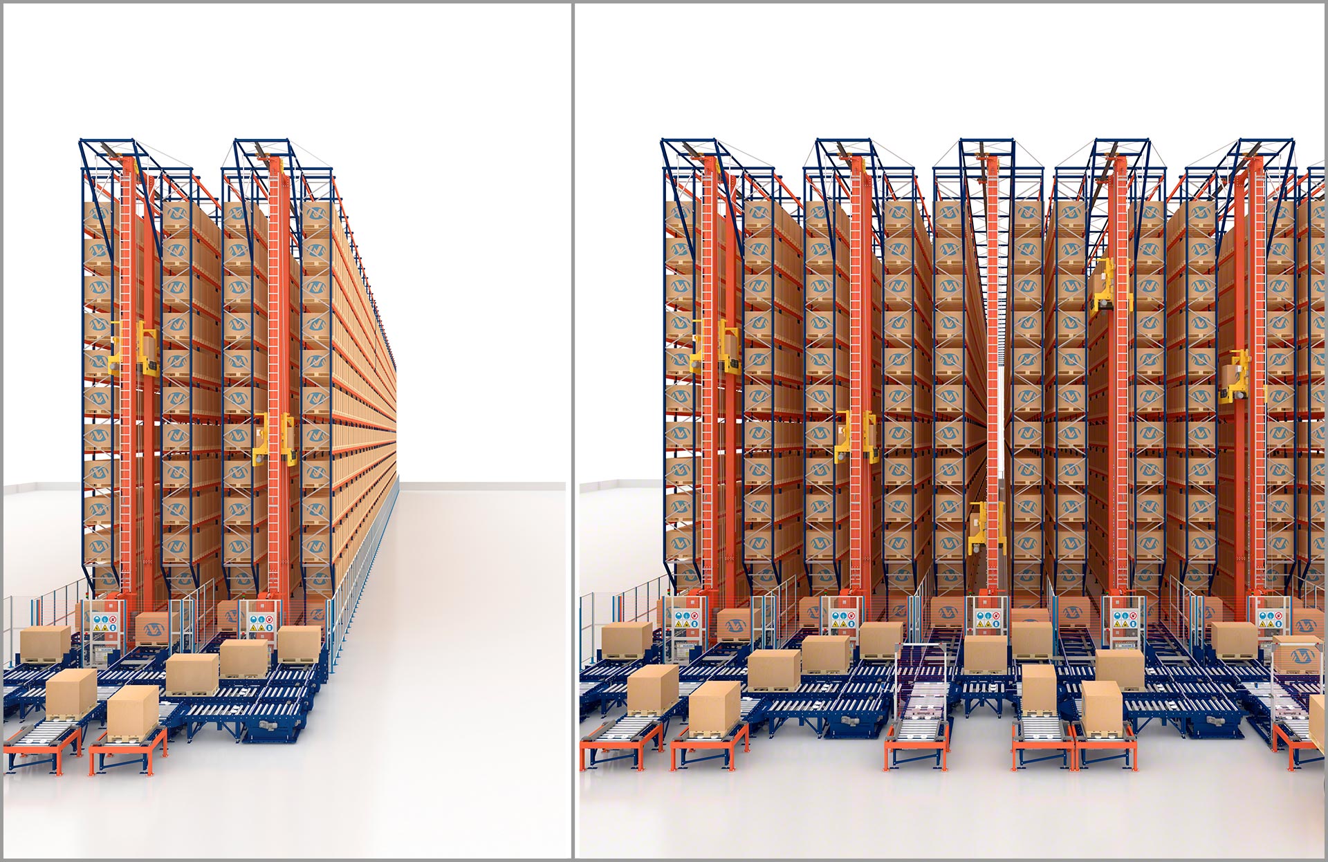 - Exploitation maximale de l’espace : les transtockeurs peuvent s’élever jusqu’à 45 m dans des allées d’à peine 1,5 m de largeur.