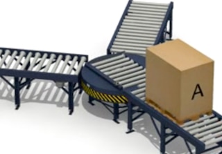 Transporter des palettes entre des convoyeurs non alignés